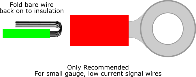 3) Fold the exposed strands of wire back on the insulated wire (as shown in the image below)
