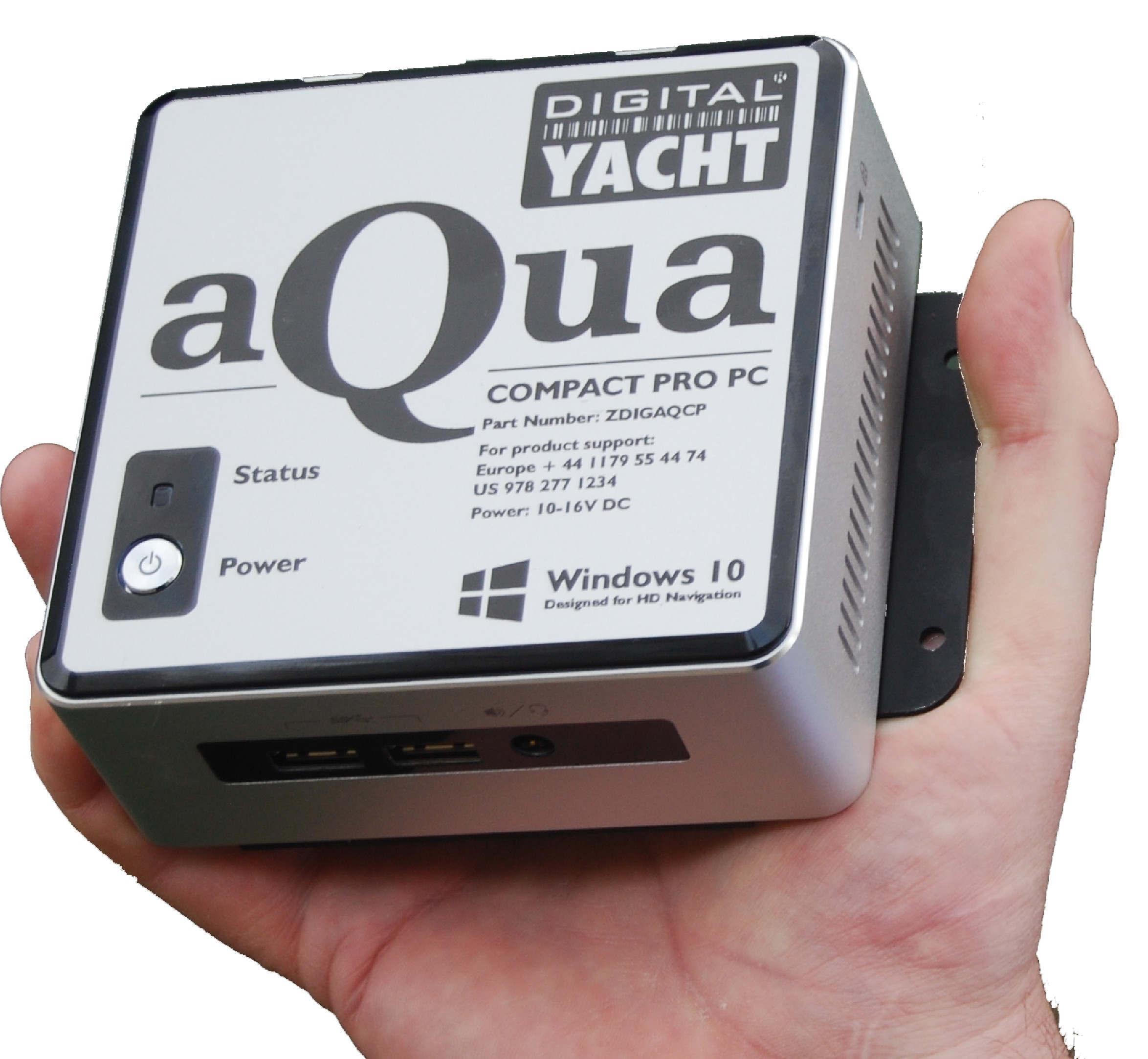 Digital Yacht have introduced their Aqua Compact Pro – a marinised, super compact PC measuring just 11.5 x 11 x 5 cm. It packs in a powerful 5th generation Intel Core i3 processor with exceptional graphics performance for the latest 3D charting and HD navigation programs. With Intel HD5500 graphics, it’s the perfect partner for applications like Maxsea TimeZero – even with radar and 3D overlays. It’s also direct DC powered with power consumption of just 20W.