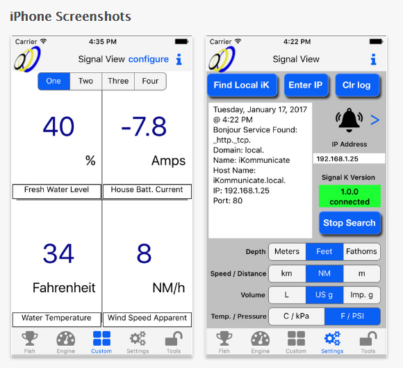 With a fishing screen, engine screen, custom screen (where you can choose what data to display) and a series of tools to make controlling iKommunicate even easier, we would recommend Signal View to anyone with an iPad or iPhone….oh and did we mention it was free ?