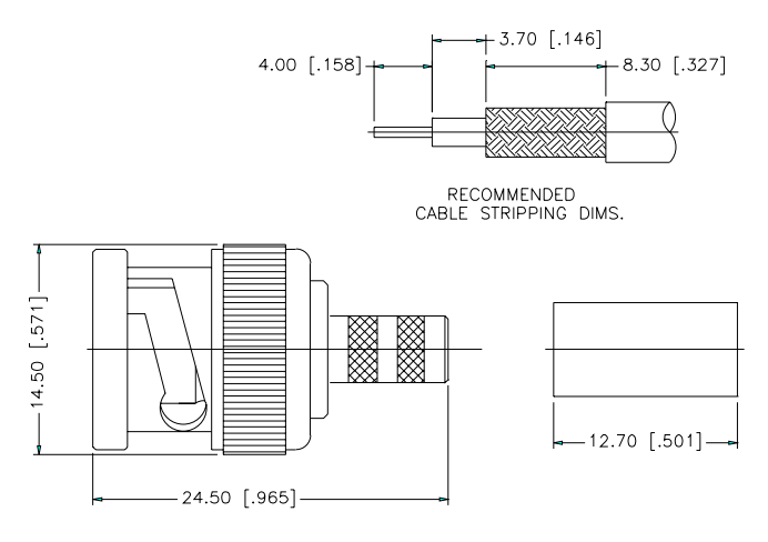 The good news is that RS have recently introduced a new range of Amphenol BNC connectors for RG-8X (LMR240) cables and they should be perfect for anyone looking to join a larger 6.1mm diameter coax cable to an AIS unit that has a BNC connector. The RS part number is 144-0892 and below is a drawing of the connector and the all important stripping measurements…