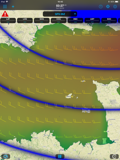 You can also purchase background detailed mapping by GeoGarage who offer charts, accurately produced from hydrographic offices around the world – so for instance in the UK, you can opt for UKHO/Admiralty charts, SHOM for France etc. In fact, there’s over 10000 charts available covering most areas of the world. You can then overlay the weather onto the marine chart and layer the data you want to see as well as run an animation of the forecast.