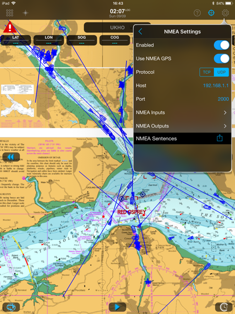 With NMEA instrument data also available, you can turn you iPad into a jumbo instrument display as in the screen shot below