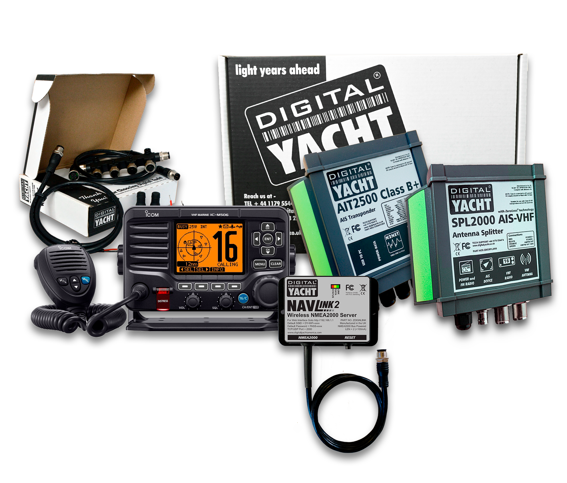 Some manufacturers are now offering a VHF with integrated Class B transponder. However, a one box solution is a compromise. Digital Yacht & Icom are leaders in their respective technologies. The current generation of combination products don’t use our latest SOTDMA 5W technology and also don’t integrate a splitter – requiring extra cost and efforts of installing a 2nd VHF antenna. With a one box solution, upgrades to any part are more difficult and multiple products make for a more reliable solution – important for life saving communications technology. Ask us for a system quote.