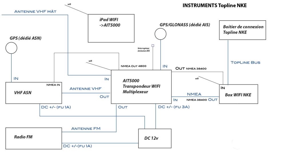 Here are some ideas from a real life Digital Yacht AIT5000 installation with iPad connectivity and integration with world beating NKE sailboat instrumentation and autopilot control. NKE is a French company that has been developing instruments and pilots dedicated to the ocean yacht racing market for more than 30 years. Look at any professional sailing boat and you’ll see they are the instrument system of choice. Combine with our AIT5000 Class B+ AIS transponder and an iPad running the advanced Weather 4D app and you’ve an amazing integrated system – at an amazing price too.
