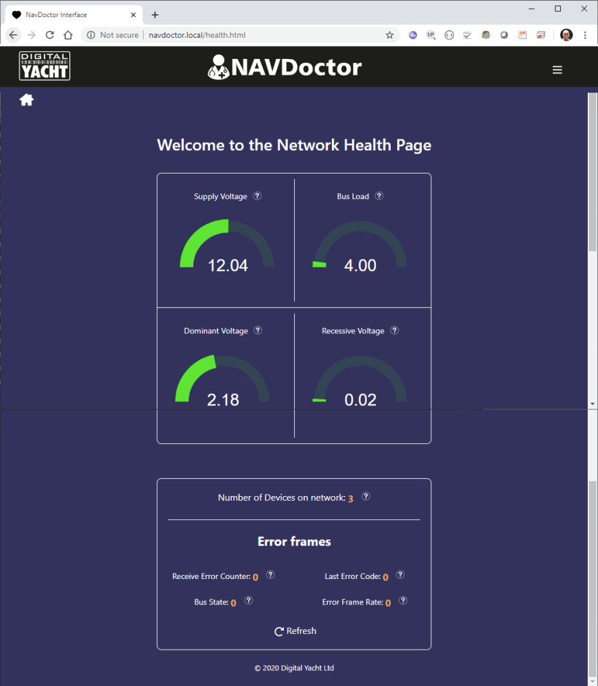 Digital Yacht’s NAVDoctor is a portable NMEA 2000 network diagnostic tool/tester. It allows you to quickly check the NMEA 2000 network. It combines the functionality of existing NMEA 2000 display programs and test equipment into a single, cost effective, simple plug ‘n play box.