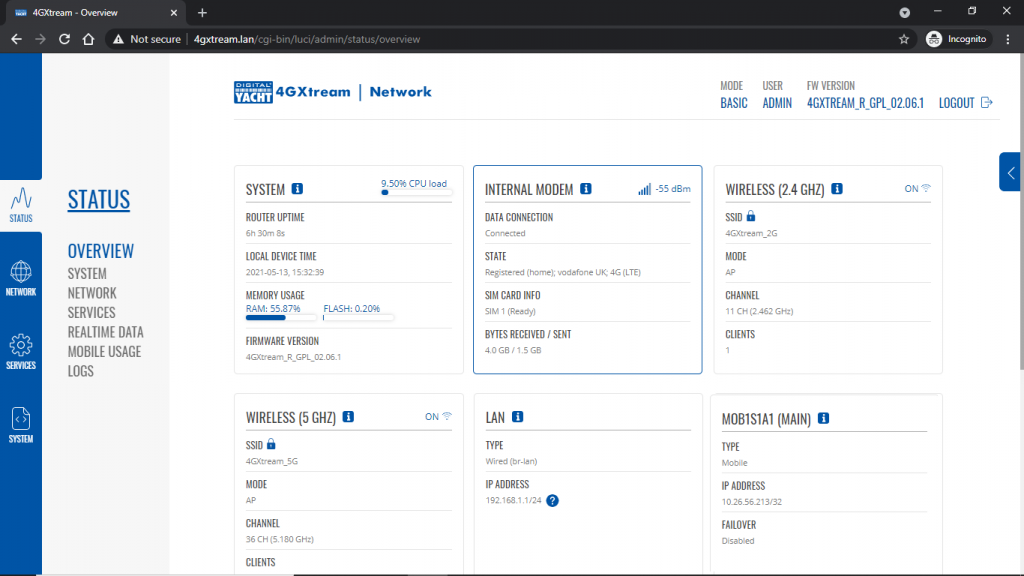 - By default the 4GXtream is in “Basic” mode and you need to click on the word Basic in the top right hand section of the web page, to enable “Advanced” mode.