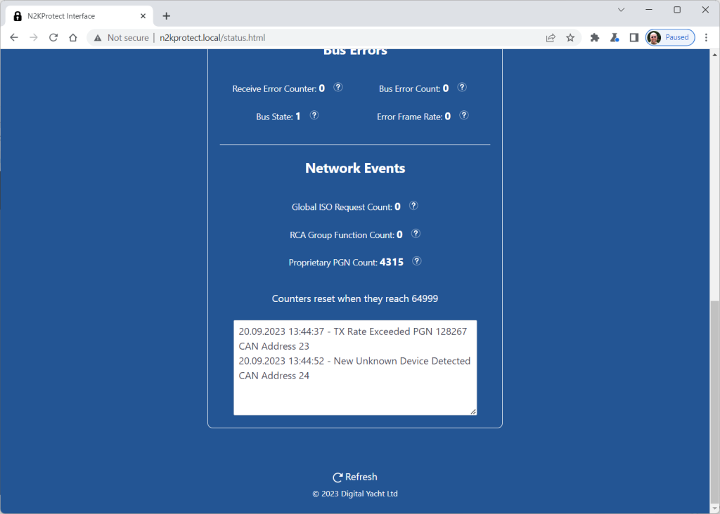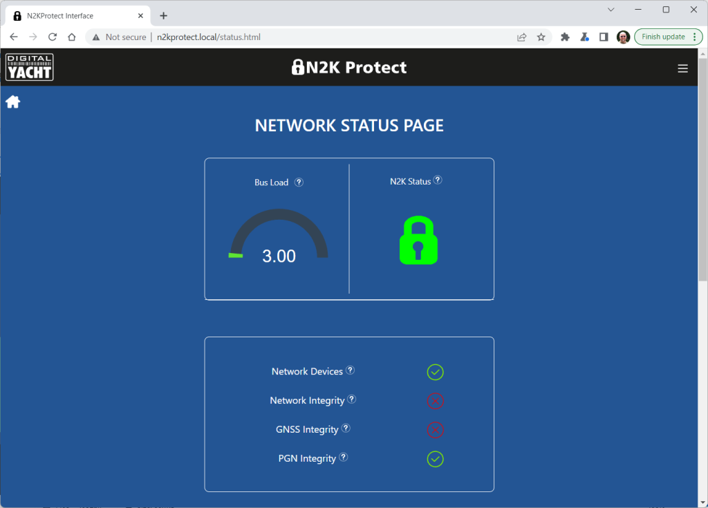 Once “locked down” the new NMEA 2000 network is monitored 24/7 by NET Protect and a series of alarms, NMEA 2000 Alerts and SMS messages (requires Digital Yacht 4G/5G product) can be configured to alert the boat owner of any malicious activity or poor network performance.