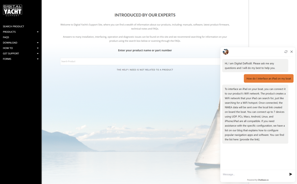 We’ve also a legendary new team member, Digital Daffodil, who is our AI chat bot advisor. Digital Daffodil has read over 10,000,000 words of tech info and handbooks and is quick to find the right information for you if you’re in a hurry. Of course, she’s still learning but we hope another useful resource from Digital Yacht