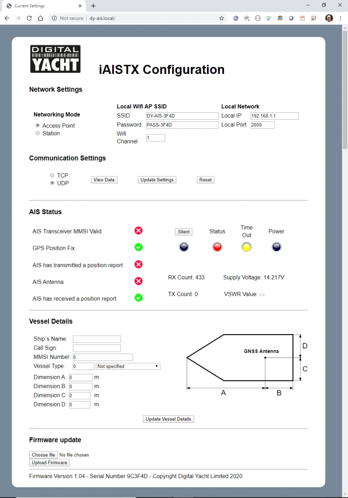 In order to facilitate the use and configuration of our AIS transponders, our new AIS transponders now have a built-in web interface. This is the case for the Nomad 2, iAISTX, iAISTX Plus and AIT5000 (since March 2020). These devices create a WiFi network on board and configure themselves by connecting to WiFi.