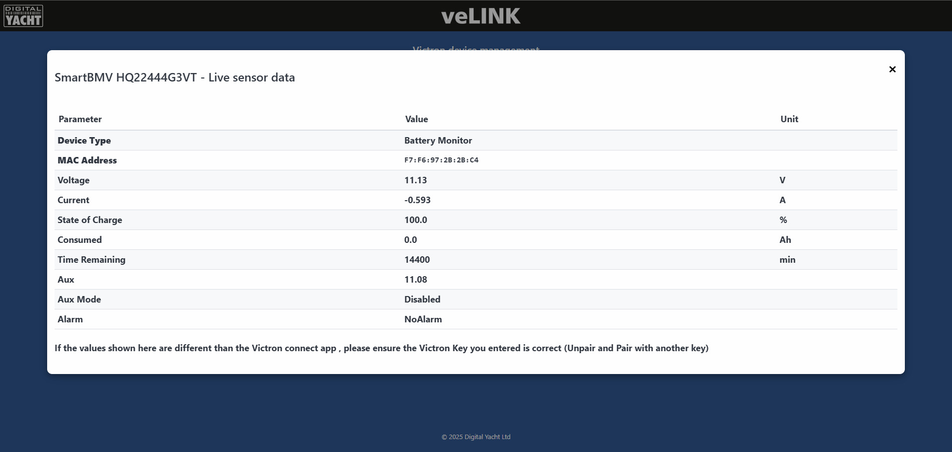 Most importantly, any alarms that have been set on the Victron devices are relayed to the NMEA 2000 network for pop up alerts on compatible displays.