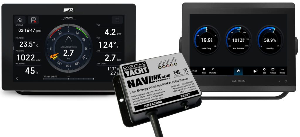NavLINK Blue is compatible with any NMEA 2000 MFD and can transmit not only wind data, but also data from any compatible Bluetooth sensors paired with it.