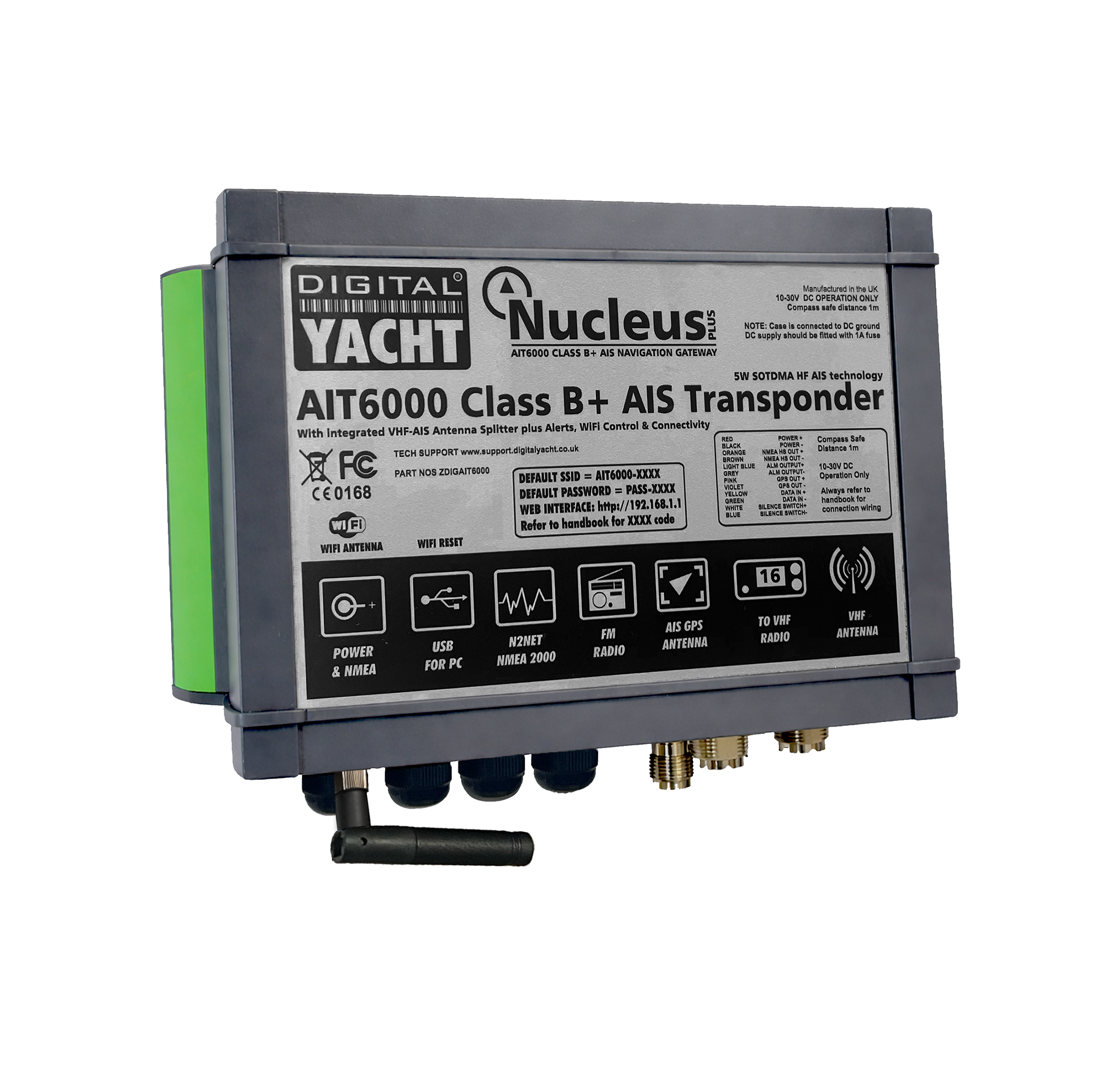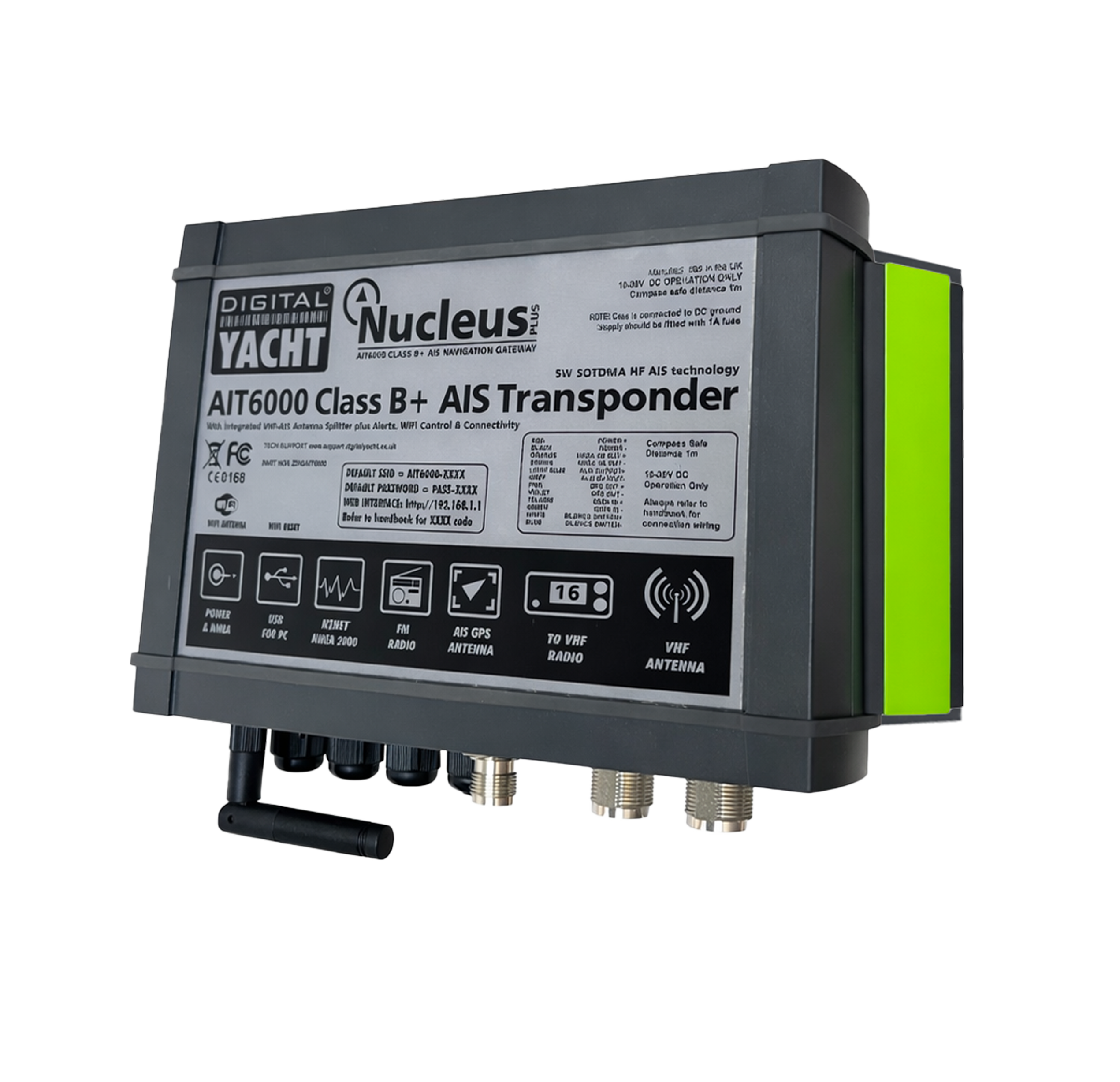Digital Yacht have introduced the new AIT6000 Nucleus AIS transponder which utilises the latest Class B+ SOTDMA technology – with an integrated VHF splitter, wireless interface, 5W power output and built-in collision & anchor alarms plus NMEA multiplexing for apps and NMEA 2000 alerts for multi function displays.