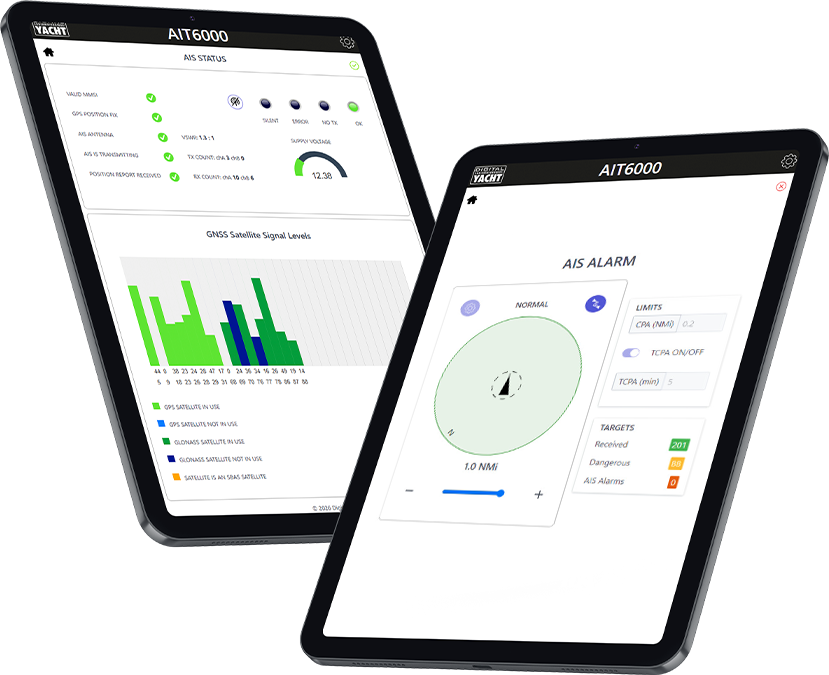 The AIT6000 also has a built in interface accessible via any connected device for diagnostics, silence of AIS transmissions and also alerts for anchor drift and AIS closest point of approach (CPA) and time to CPA (TCPA).