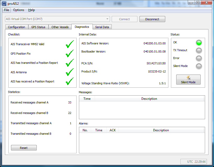 This is a very valid question. Especially if you have spent a few hours installing the transponder then knowing that it is working OK is very important. Using the proAIS2 configuration software (supplied with the unit) allows you to see if the GPS position is OK. You can monitor the AIS reception of other vessels. As well as ensure that there are no errors or alarms. However, if you are new to AIS, there is always that nagging doubt as to whether other vessels are seeing you.